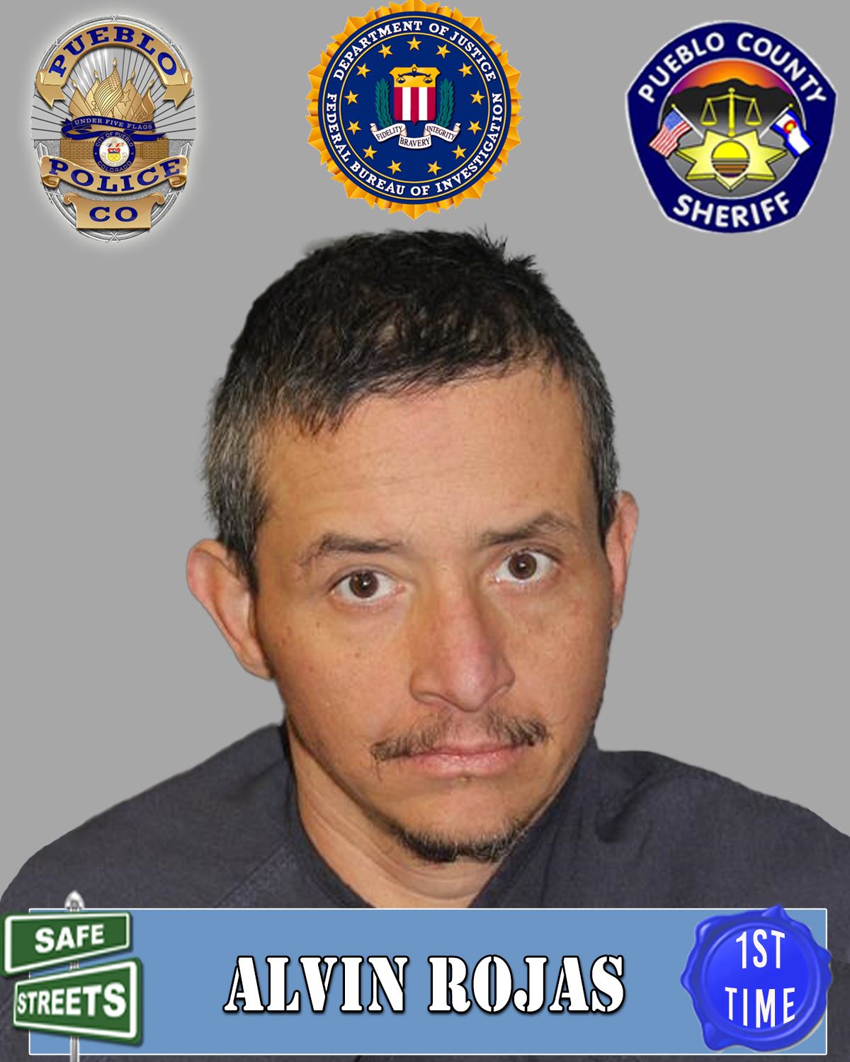 Alvin Rojas (39) is described as a Hispanic male, 5’04” tall, 160 pounds, with black hair and brown eyes. Rojas has a no-bond warrant for a Parole Violation – Traffic Offense which includes Aggravated Motor Vehicle Theft and Vehicular Eluding.
